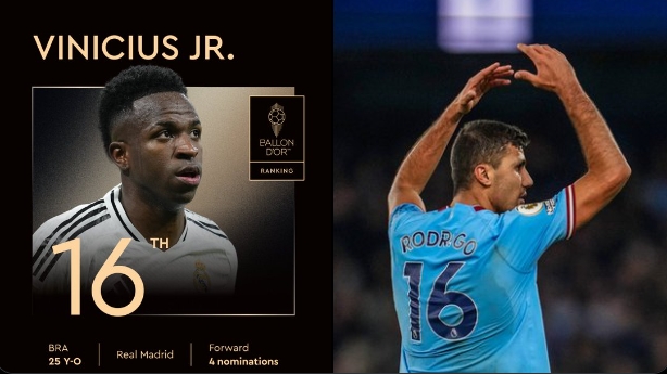 维尼修斯拿下金球奖第16名,只为致敬罗德里