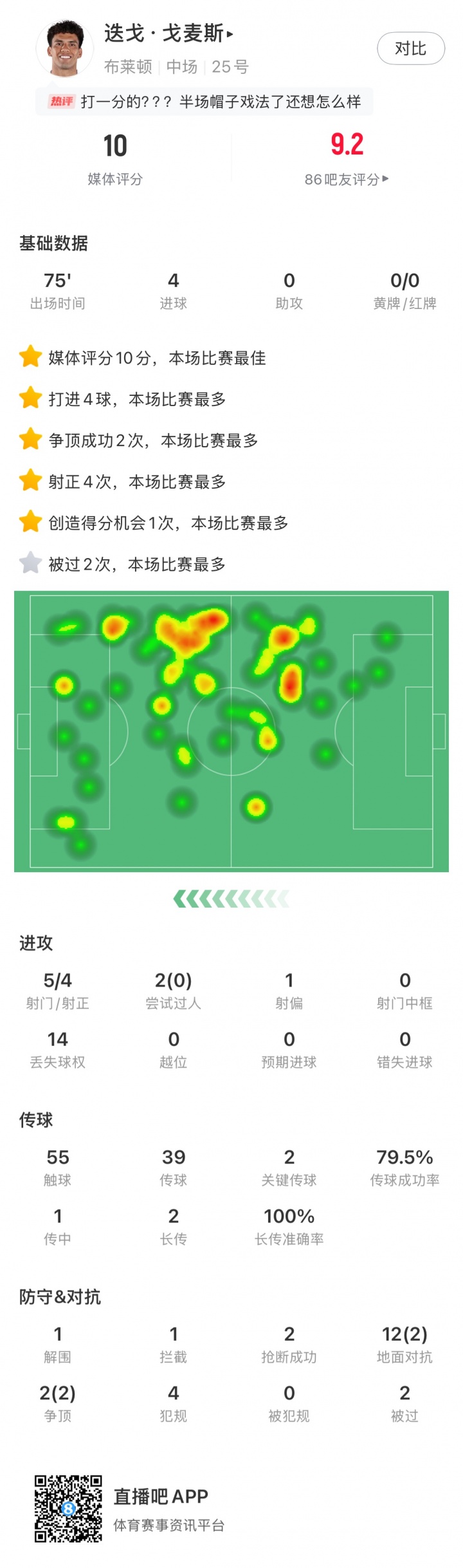 本赛季戈麦斯职业联赛 杯2场打进了5球(分别对阵英冠牛津联、英甲巴恩斯利)。