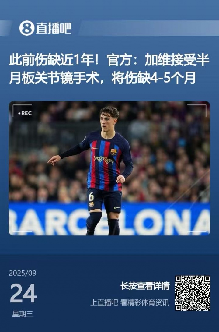 实惨😭巴萨四天官宣加维等四人负伤 ,前中后场均折损大将