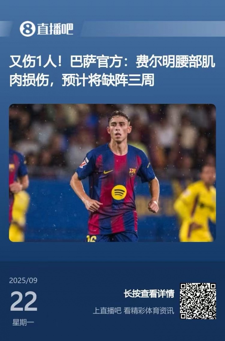 而值得一提的是,巴萨一周内已经官宣加维、费尔明、拉菲尼亚、霍安加西亚四人负伤 ↓