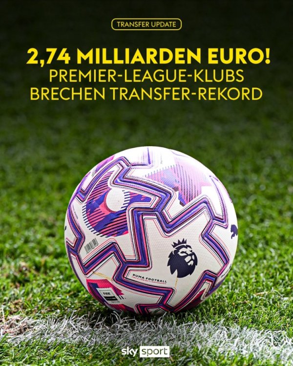 英超今夏引援支出27.4亿欧元,创造单一转会窗口引援支出记录