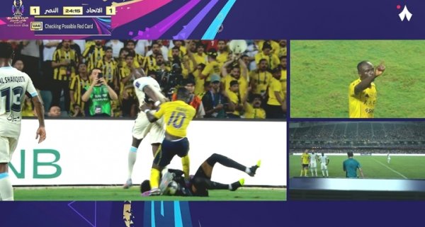 马内直红!马内踩踏守门员腹部,裁判 看回放后警告 改为驱逐 !