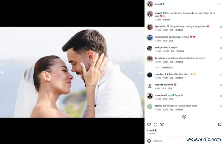 11月10日讯 阿森纳守门员拉亚在个人社媒晒出与妻子婚礼时的照片,并为妻子送上生日祝福。