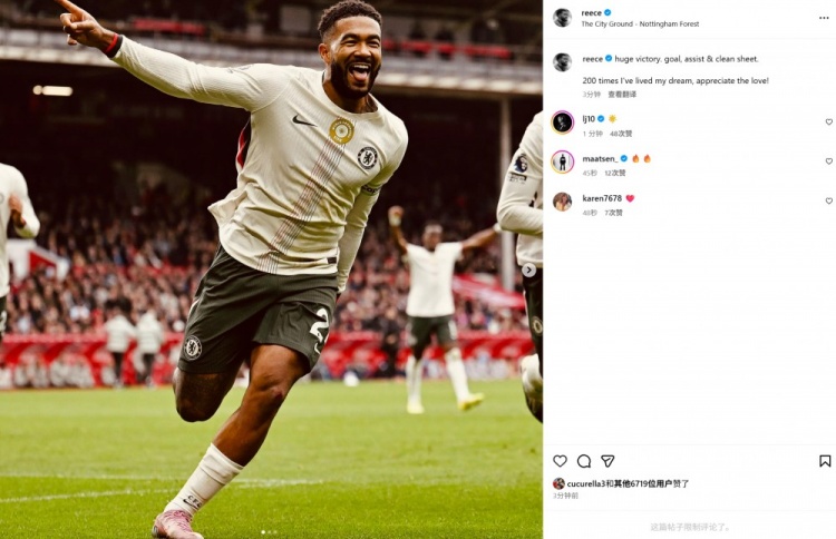 本场赛事 里斯-詹姆斯迎来球队生涯200场里程碑,并且传射建功。他在赛后社媒晒照写道:“一场大胜英超联赛现场直播在线观看,并且取得得分 和助功 ,苏超直播完成零封,200次出场实现理想 ,感谢大家的爱!”