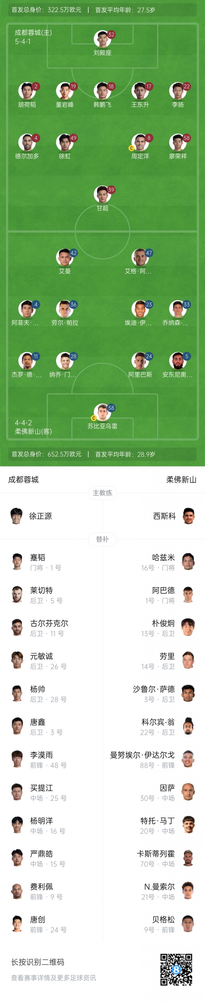 成都蓉城杆位:32-刘殿座、2-胡荷韬、17-王东升、18-韩鹏飞、19-董岩鋒、22-李扬、49-徐虹、4-德尔加多、8-周定洋、39-甘超、58-廖荣祥