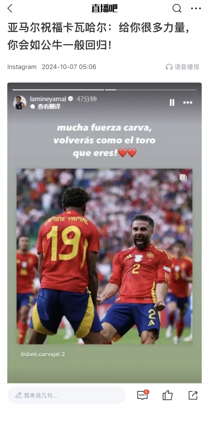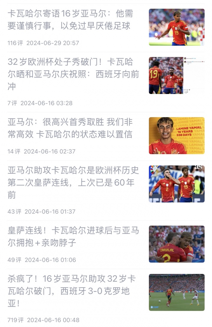不过此前有报道称,苏超直播2024年欧洲杯之后,亚马尔关注了卡瓦哈尔。2024年欧洲杯亚马尔和卡瓦哈尔有很多互动,卡瓦哈尔多次鼓励亚马尔,后者在前者遭遇重伤的时候也通过社媒送上祝福。