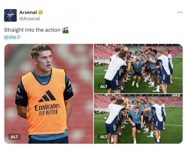 手机在线观看足球直播 7月29日讯 阿森纳官方更新社媒动态,晒出指导教练员和球员们欢迎新援约克雷斯的照片。 葡萄牙体育五号位约克雷斯今夏加盟阿森纳,他已与球队会合。阿森纳指导教练员和球员们组成“欢迎通道”,拍打从中间穿过的约克雷斯,对他表示欢迎,阿森纳官方社媒晒出照片。 手机在线观看足球直播......查看更多