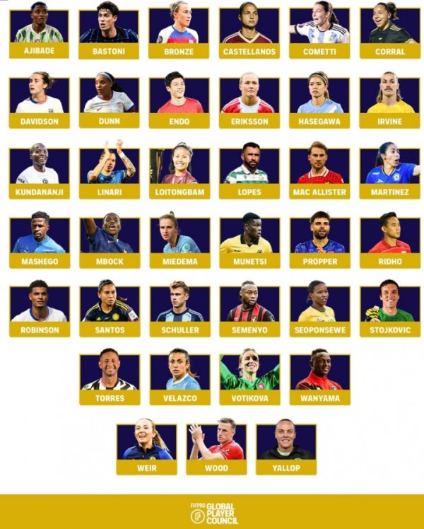 FIFPRO25–27年度全球球员理事会成员,麦卡利斯特、巴斯托尼入选